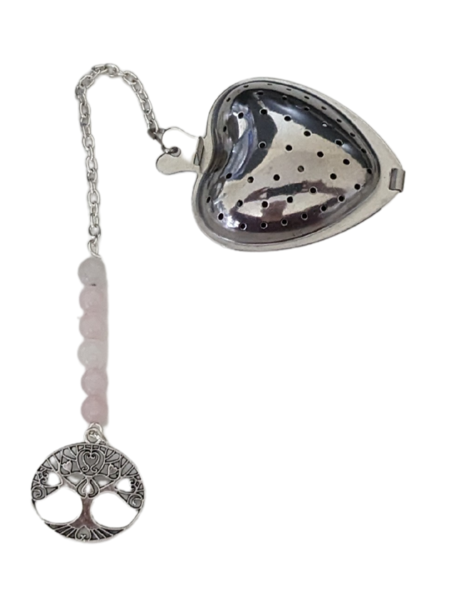 La boule à thé est en acier inoxydable, facile à nettoyer, et ornée à la main d’un pendentif en Quartz Rose naturel. Elle apporte une touche élégante et énergétique à vos instants de thé, pour cultiver l’amour de soi en toute simplicité.