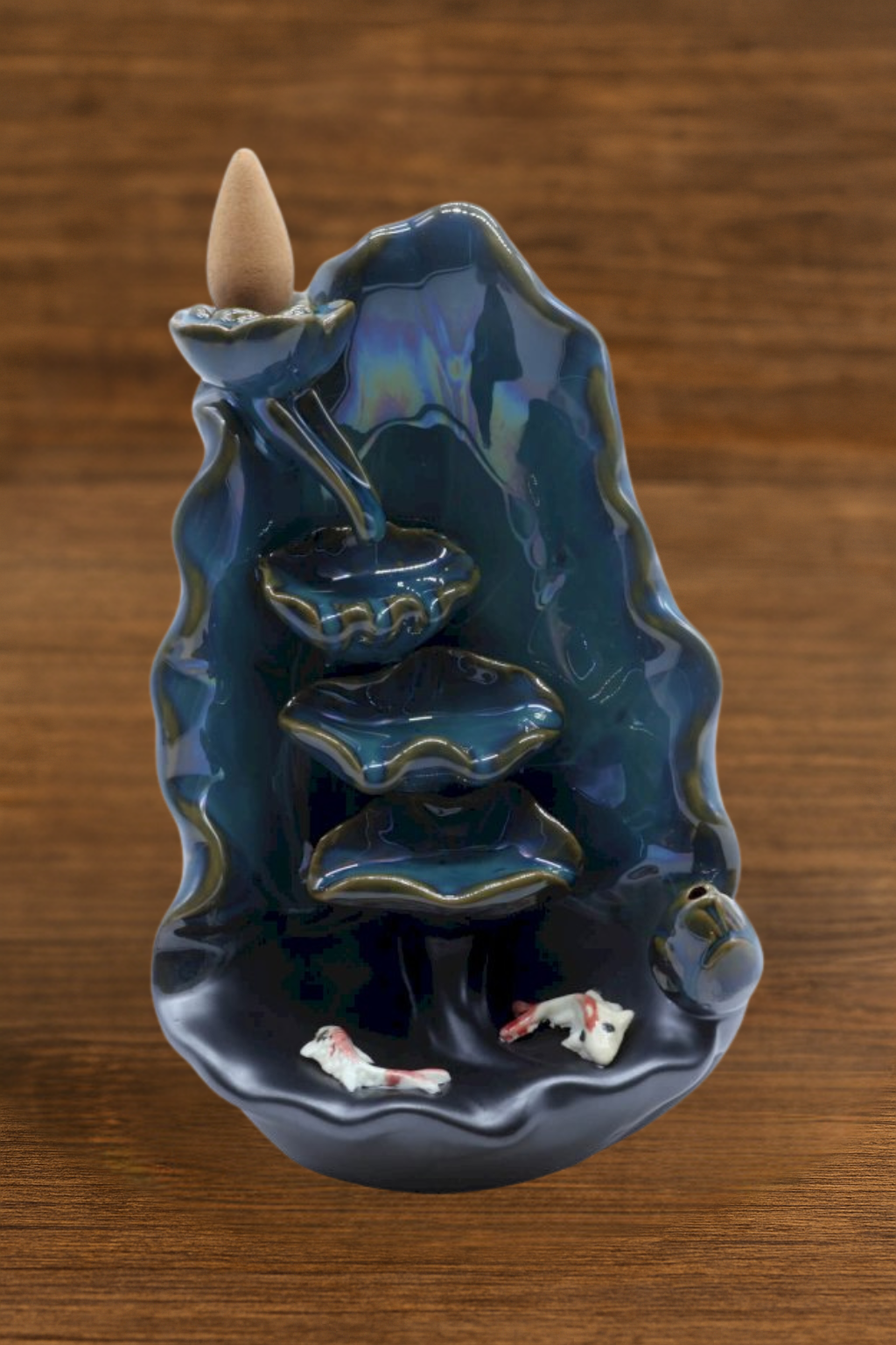 Porte-Encens Backflow Cascade Poissons Céramique 11cm