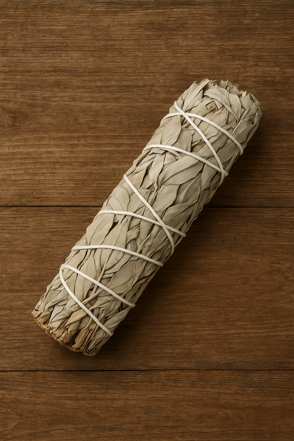 Ce fagot est composé de feuilles de sauge blanche séchées et roulées, conçu pour offrir une fumigation optimale.